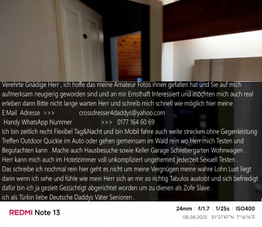 als Crossdresser Sissy Luder bin ich immer an ehrlichen neuen realen Männer Kontakten interessiert und lasse mich natürlich vorher voll unkompliziert Ungehemmt Schamfrei Sexuell testen begutachten und bei gefallen sehr gerne mich auch Verpflichten als Nutte zu dienen und das am liebsten voll unkompliziert regelmäßig und langfristig und stelle mich sehr gerne auch so Abends oder Spät Nachts für ein Sexuellen Test Begutachtung Vorstellungsgespräch zur Verfügung ...