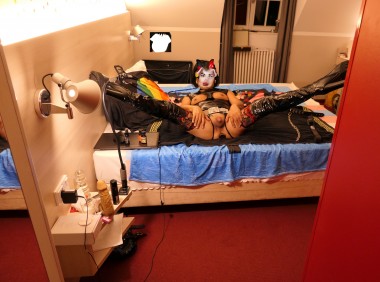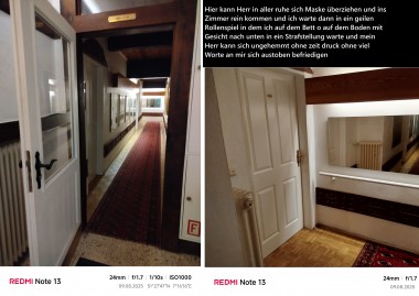 Bild 22 Auch Herrn dürfen sich hinter der Zimmertür sich Maske überziehen und mich unerkannt benutzen !!! |