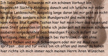 ich bin eine Naturgeile triebhafte Devote feminine gehorsame gefügige willige Sissy Slavi Lustschlampe nichtsnutzige Abfickstute Lusthure Freiläufige Freiwild Zweilochstute Nutzvieh nur für Reifere Konsequente Strenge Dominante Ältere Semester Daddys die Väterlich sind ,