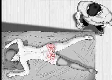 Bild 24 nach Absprache entweder auf dem Boden oder auf dem Bett in ein Strafstellung mit Gesicht nach unten |